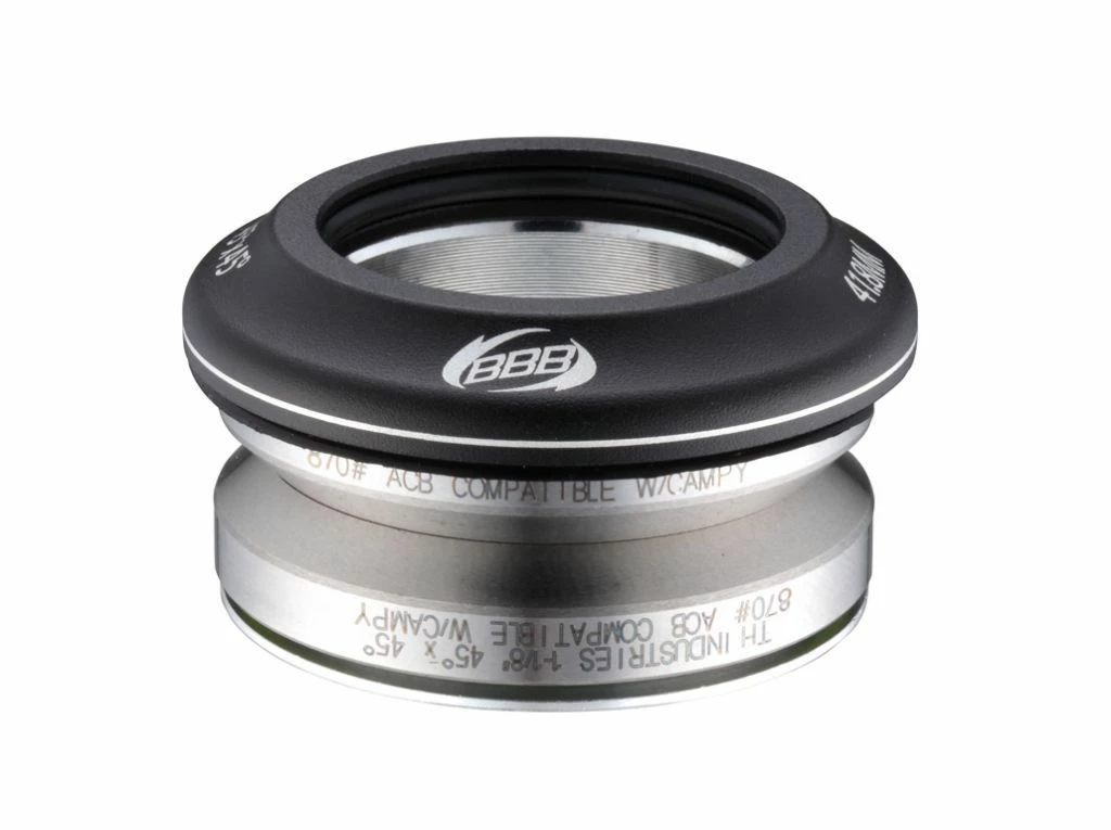 INTEGRATED BHP-40 Jeu de direction 1 1/8″. Roulements cartouche CrMo. 45°x45° angles. Diamètre: 41.8 mm. Jeu de direction intĂ©grĂ©. Diamètre du roulement: 41,8mm. Roulements cromo Ă©tanches 45Âşx45Âş. Entretoise conique en aluminium 8mm. CĂ´ne ouvert pour une installation facile.