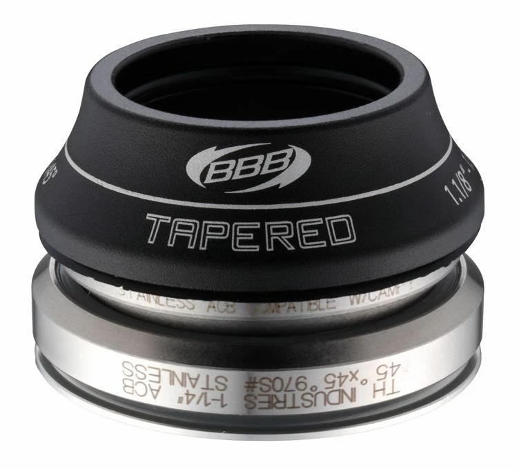TAPERED BHP-45 Roulements cartouche inox. 45°x45° angles. Diamètre de roulement 1 1/8″ – 1 1/4″. Jeu de direction conique intĂ©grĂ©. Diamètre du roulement: 1.1/8-1.1/4″. Roulements inoxydables Ă©tanches 45Âşx45Âş. Entretoise conique en aluminium 15mm. CĂ´ne ouvert pour une installation facile.